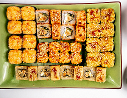 Рыбная Рыба, Цезарь запеченный, Темпура сяке, Хот Кисс, Кавай лосось. (40 шт.)